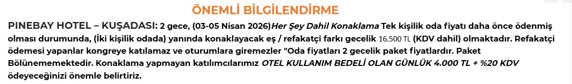 yapmayan katılımcılarımız kayıt ücretlerine ilave OTEL KULLANIM BEDELİ OLAN